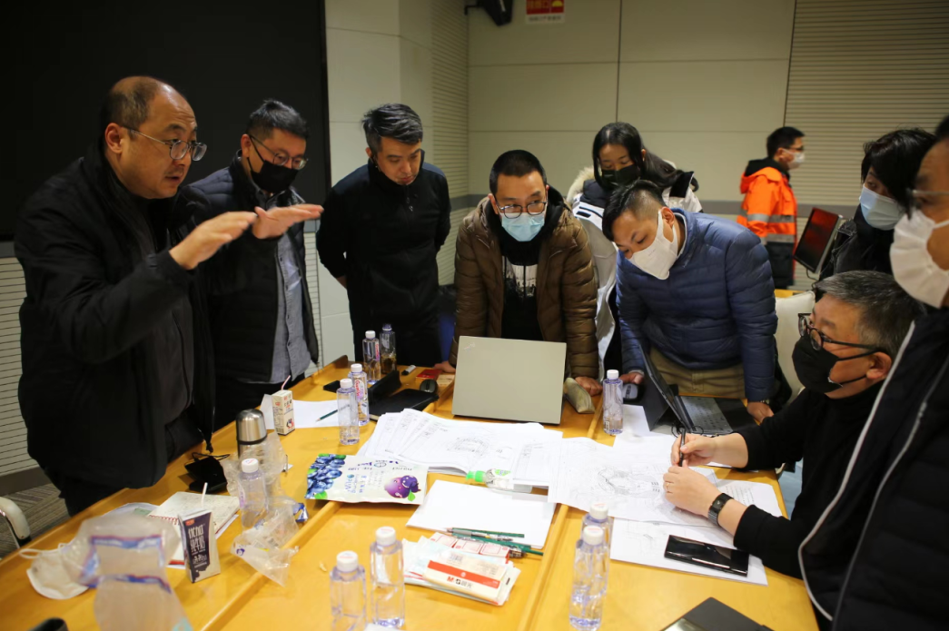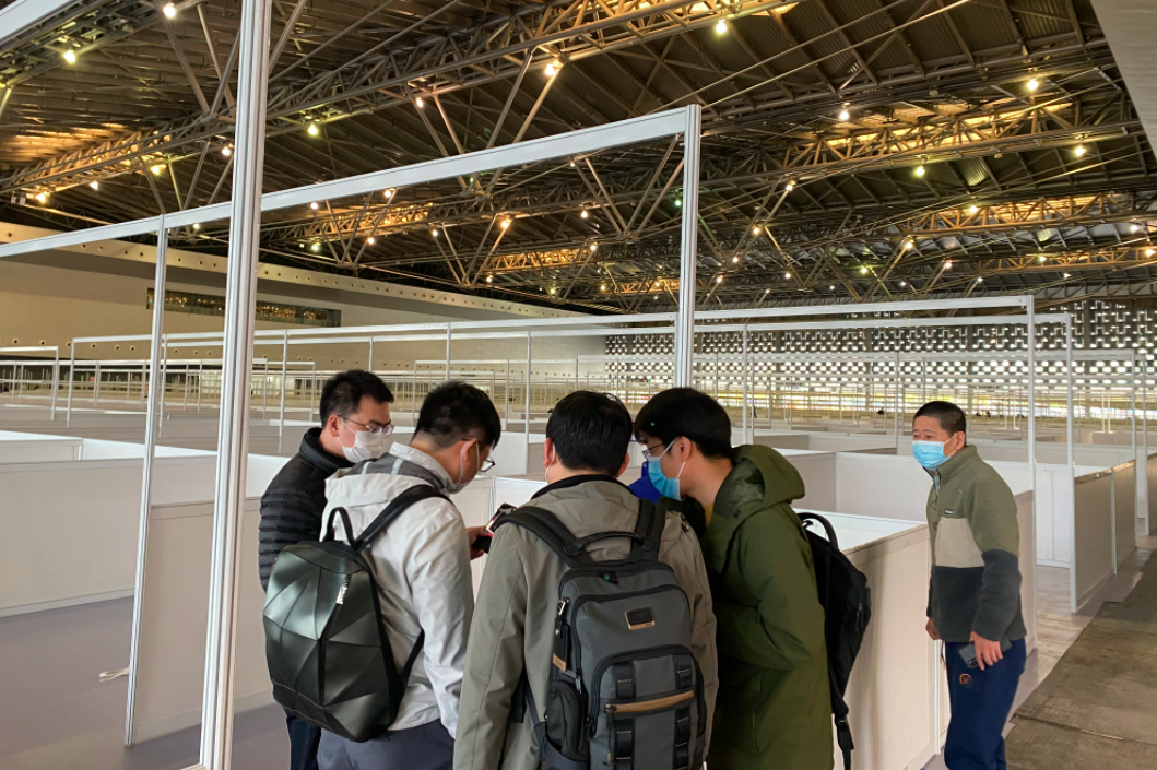 经过两个多小时的紧张设计,第一轮初步设计方案(包括总体布置图、以及床位布置图)很快“出炉”并通过。经过30多个小时的连续奋战,设计主体工作基本完成,3月21日23时,设计团队配合防疫工程指挥部进行现场巡查验收。