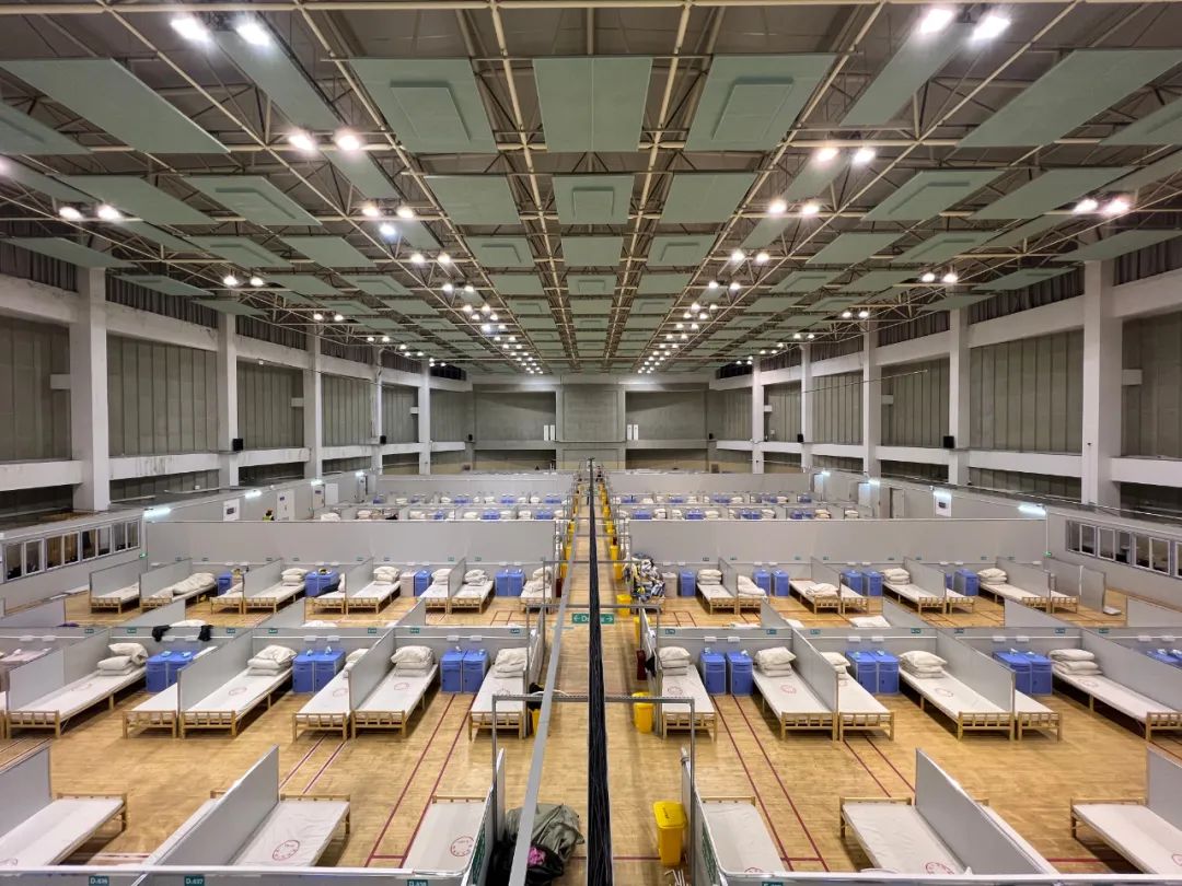 3月23日15时闵行体育馆应急改造工程项目完成验收,建设人员全部撤离现场。当日20时,中山医院临时执业点(闵行体育馆)正式启用接收感染者。