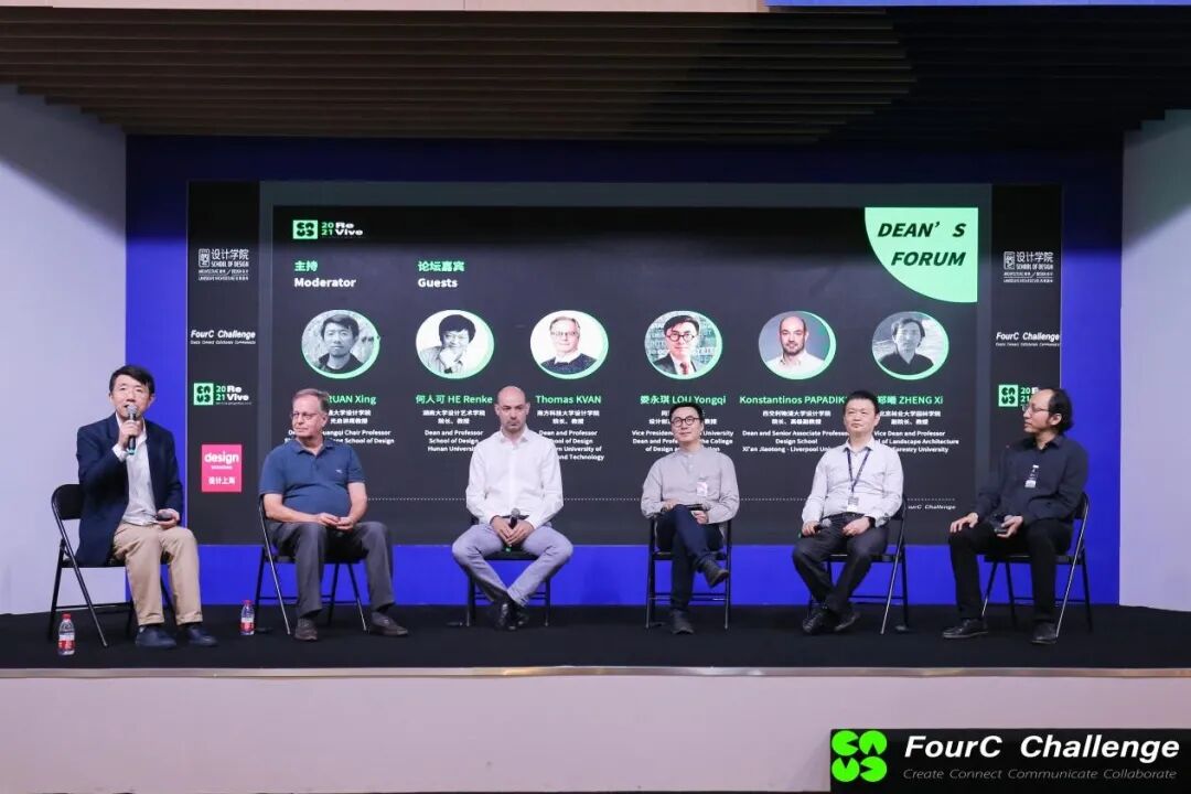 论坛上,阮昕抛砖引玉,介绍了上海交通大学设计学院“新学院,老学科”成立的初衷,以及FourC Challenge的主办理念——基于疫情和后疫情的时代背景,与设计学院学科融合交叉的背景,鼓励学生重新思考什么是设计,什么是人类当下面临的重大挑战。阮昕有趣地把设计教育比作一盘水果沙拉,是不同学科作为水果加入沙拉酱后完美整合的形式。Thomas Kvan认为,设计是碎片化的学科,是各种领域的科学与设计的有机结合,是将多学科的知识转化为服务于人类社会体验的行动。作为南方科技大学创新创意设计学院的首任院长,他力求将南科大现有顶尖的环境科学、量子物理等方向的学术资源和设计整合,转化至人们日常所需的衣食住行,渗透到社会生活的方方面面。何人可以包豪斯学校为例,提出建筑学是一门包罗万象的学科,本身就整合了多学科的基础。在后疫情时代的背景下,“once something changed, changed forever, for good”。在线的虚拟课堂中,每位学生和老师的距离是相等的,比起普通的课堂优势更加凸显。未来,线上教育也很可能成为主流。