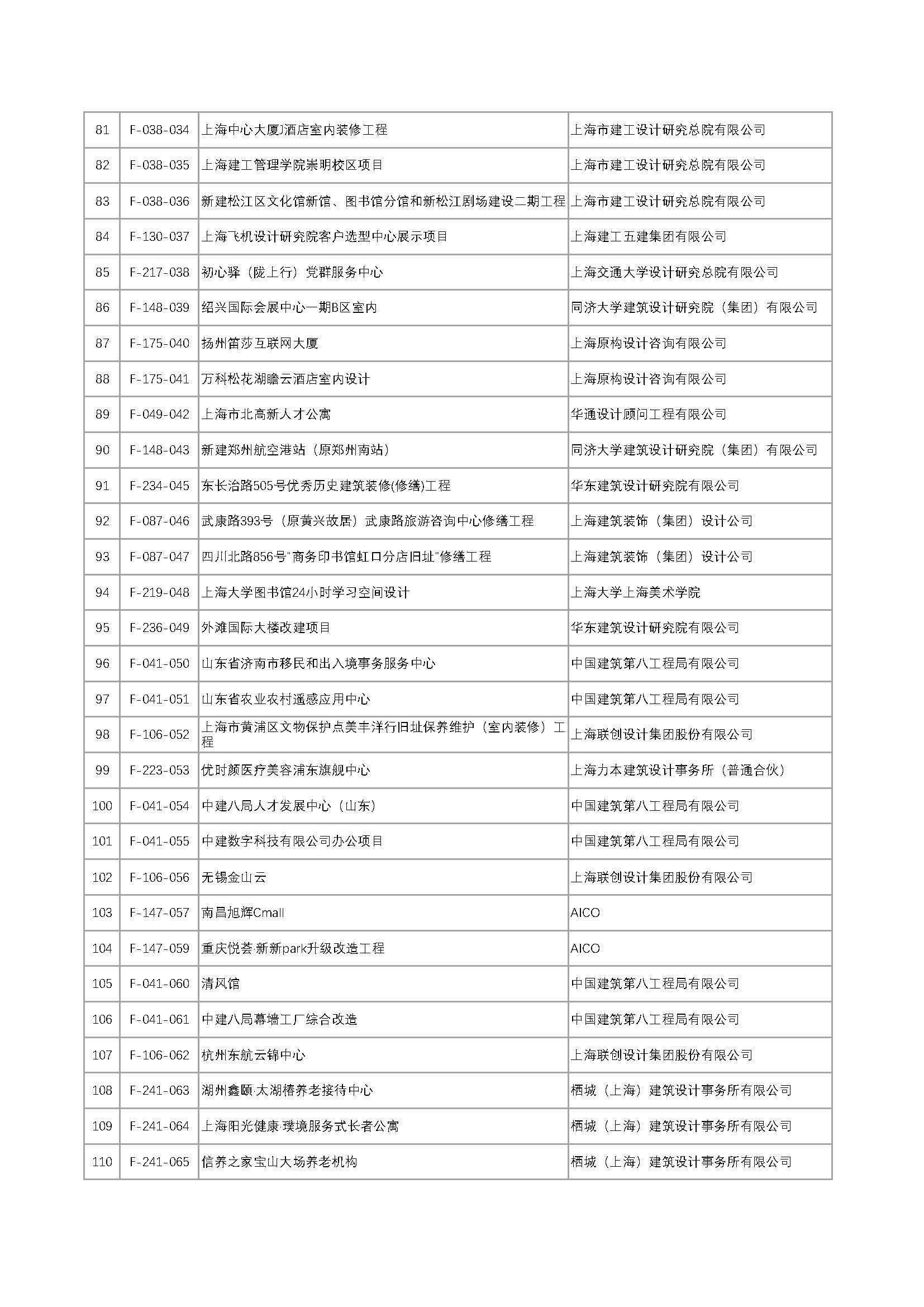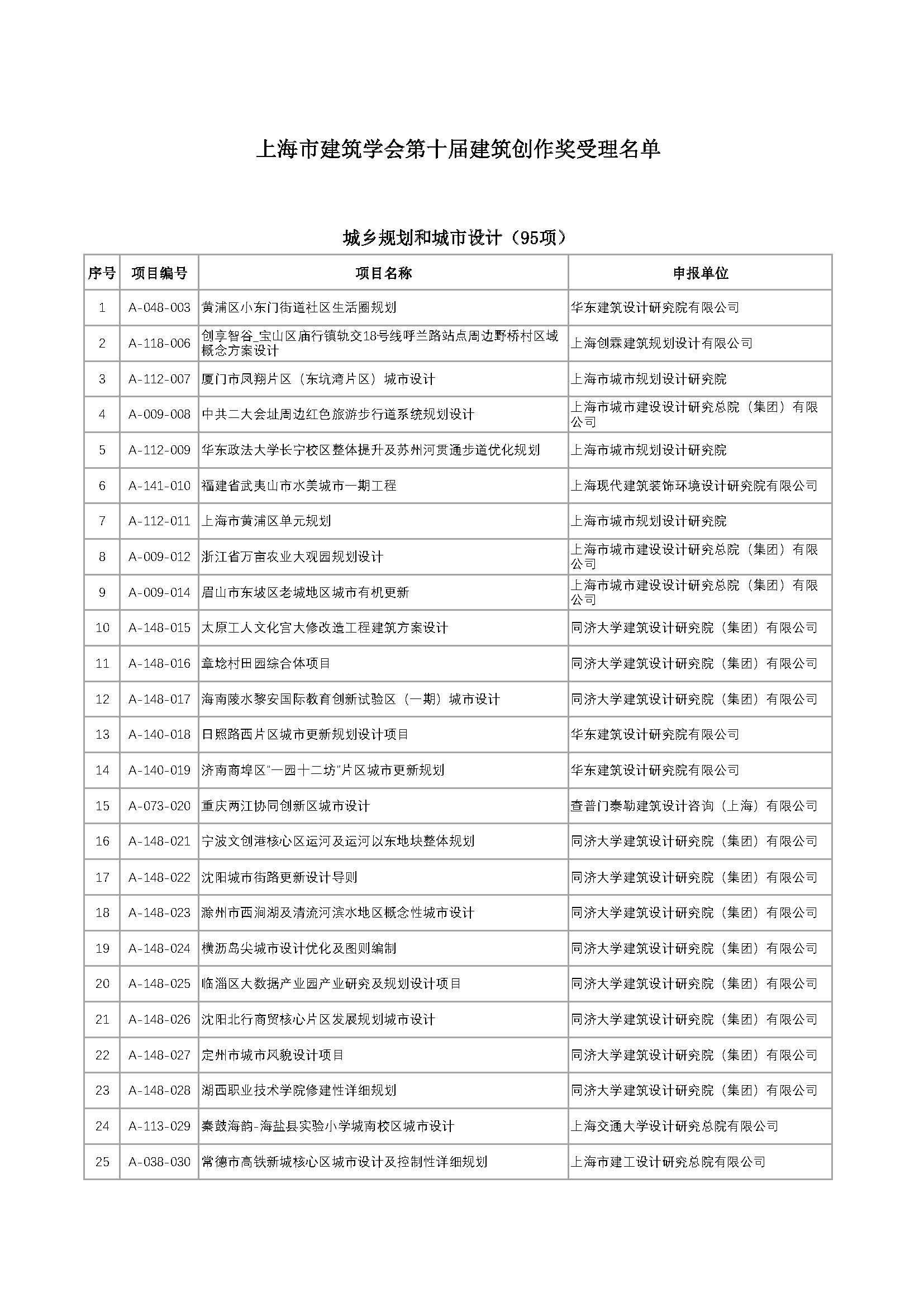 上海市建筑学会第十届建筑创作奖获奖项目公示通告